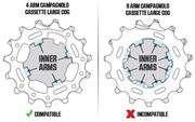 *Campagnolo cassettes with 8 inner arms on the largest cog are NOT compatible with the KICKR ’18/KICKR V6 and KICKR CORE version.